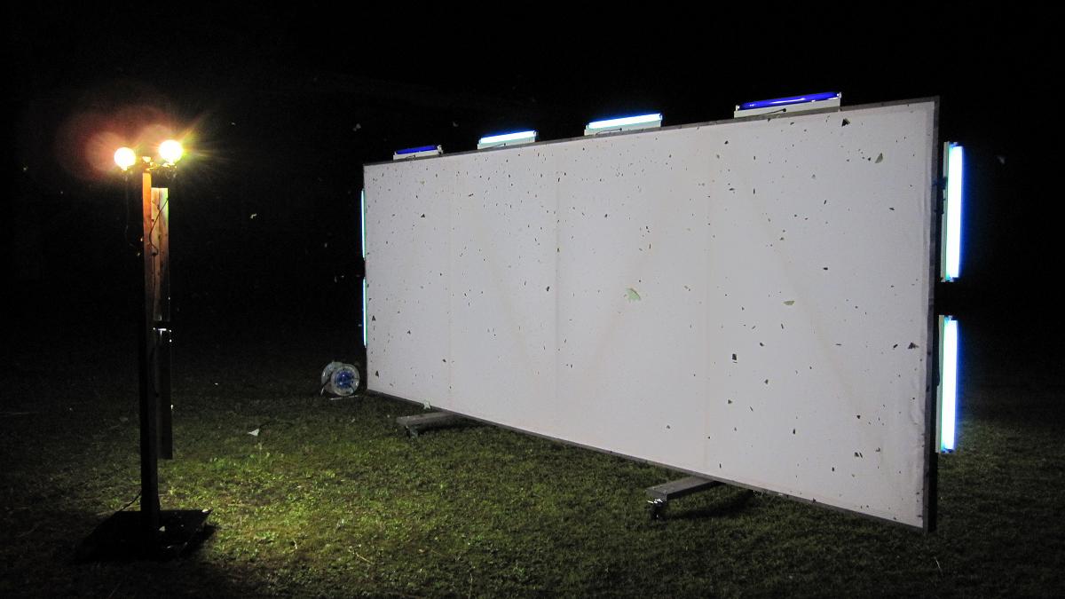 内田晴之「大地の記憶」プランのイベント、虫を集めるライトトラップの装置を組み立てているところ。