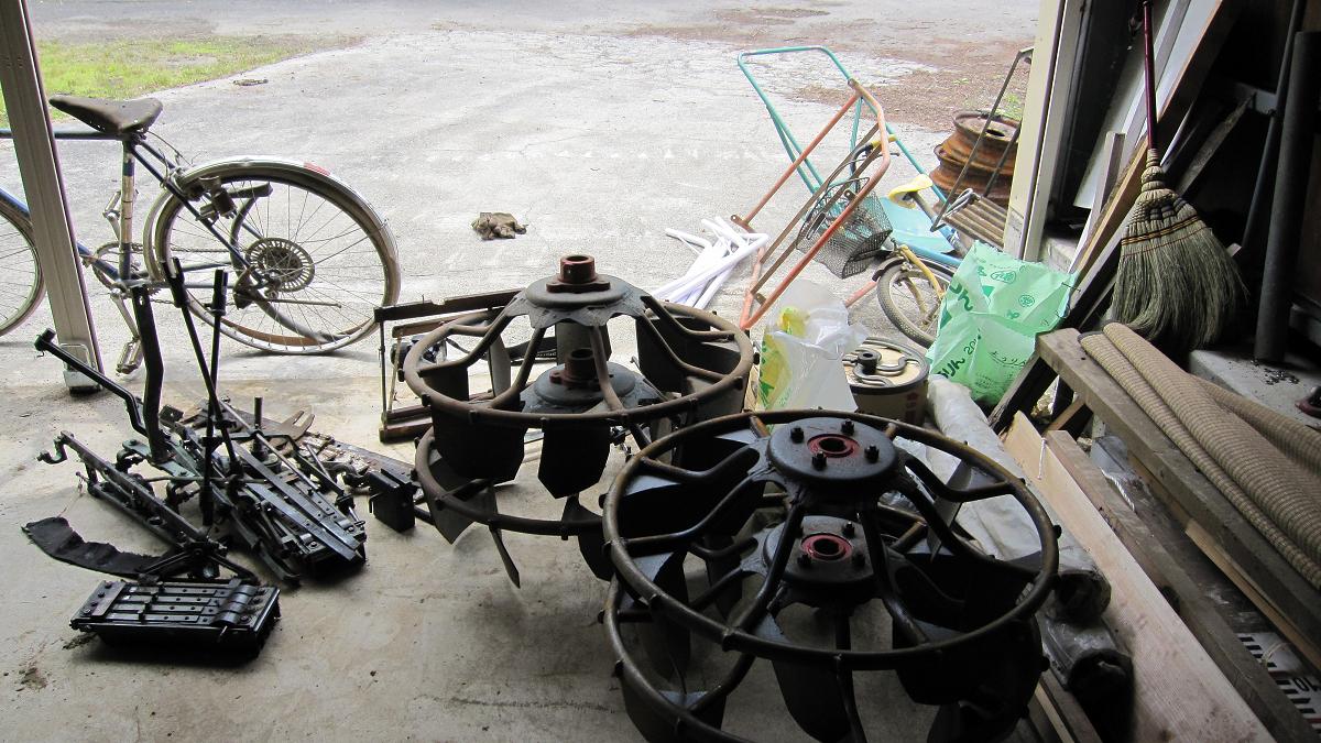 こちら若林亮プランのワークショップで素材となるクズ鉄や古い農機具。