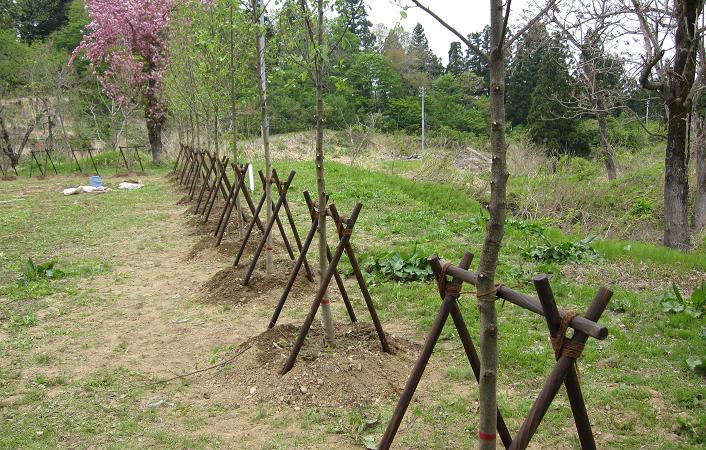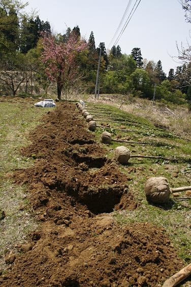 稲架木(はざぎ)と彼岸花を植え育てる「大地の記憶」プロジェクトは、4月29日~5月4日、5月1日~5月17日の枯木又集落現地滞在によって、おおかたの準備が整いました。