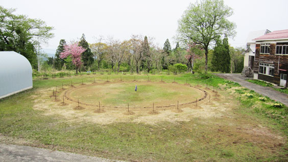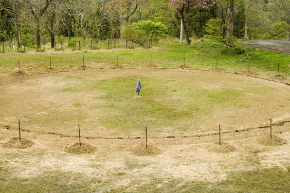 精華大学立体造形の教授(ボス)である内田晴之教授が、枯木又プロジェクトで校庭をつかったインスタレーションをたちあげました。