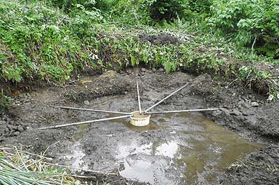 小学校の下手にある古い池を掘り返す