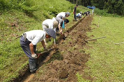 7月に側溝を掘って、8月にそばまき。